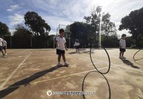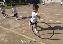 Los niños de la Sala de 5 años de la seño Dominga realizaron un trabajo con aros en duos para aprender a desenvolverse en el espacio con un elemento y su compañero. ¡Muy divertido!