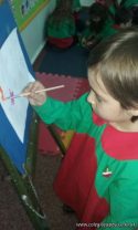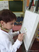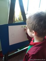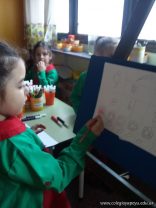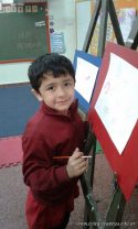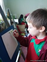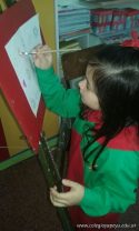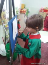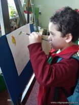 En el área de educación artística, los alumnos de las salas de 5 años, comenzaron la primera etapa de sus producciones y como verdaderos artistas usaron atriles y pinturas acrílicas .