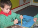 El color es uno de los elementos más llamativos para los niños pequeñitos, por eso, con mucha frecuencia, los invitamos a jugar con ellos. En esta oportunidad pintaron con acuarelas sobre cartulinas de colores. ¡Cómo lo disfrutaron!