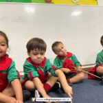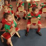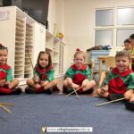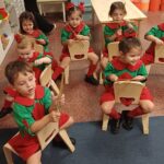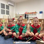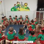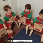 Los niños de Sala de 3 acompañaron una obra académica llamada “Komedianti: Op. 26 II Galop (The comedians)” realizando diferentes ritmos con palillos de madera.