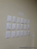 Allí intervenimos las paredes dejando pequeños sobres con los nombres de todos los que conforman el Colegio. Por razones de organización los dividimos por categorías y niveles: personal de ordenanza; aquellos que realizan varias tareas en diferentes áreas; las maestras de Jardín y Primaria y los profes de Secundaria y Educación Física.