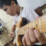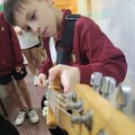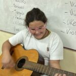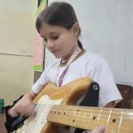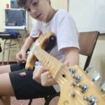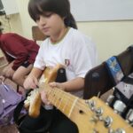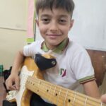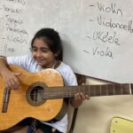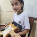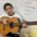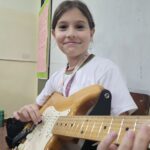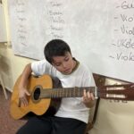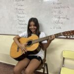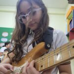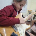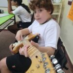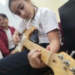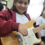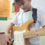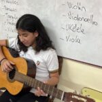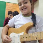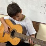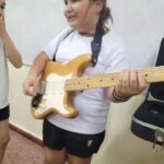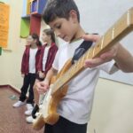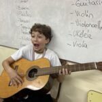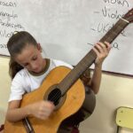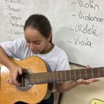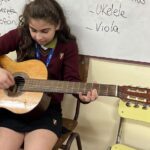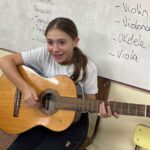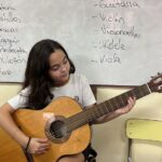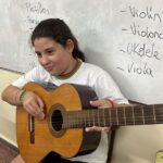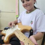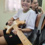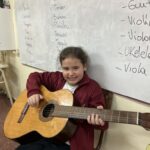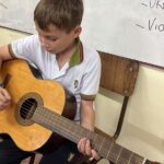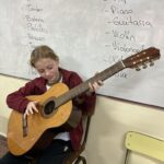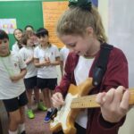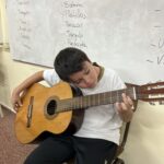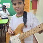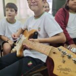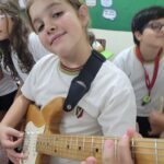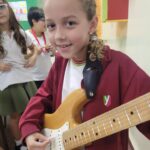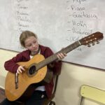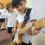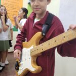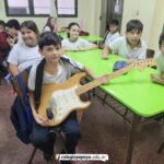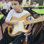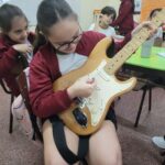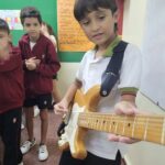En clases de Música, los alumnos conocieron uno de los instrumentos de la familia de las cuerdas: la guitarra. Pudieron experimentar su sonoridad y algunas técnicas de ejecución.
