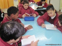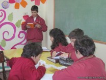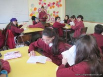 Los alumnos de 6to grado, nuevamente disfrutando de la lectura de una novela: ¿Qué esconde Demetrio Latov? de Ángeles Durini.