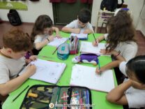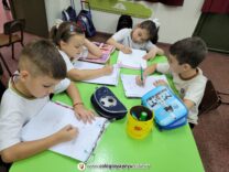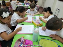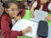 Los niños de 2do grado realizaron las partes del rostro humano, partiendo de formas geométricas simples que los orientaran a lograr la forma natural. El ejercicio fue realizado paso a paso con las indicaciones en la pizarra.