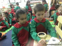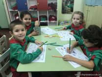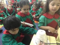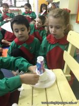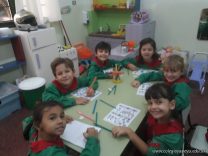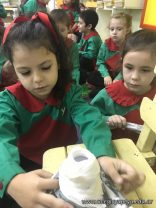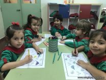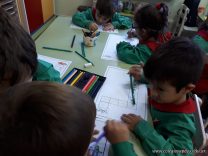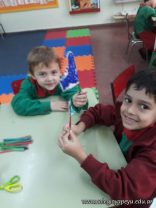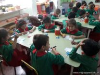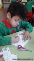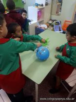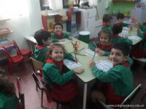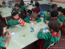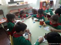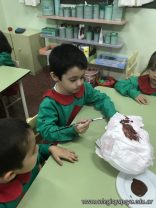Los niños de las salas de 5 años como parte de la unidad didáctica realizaron títeres de varillas con la imagen de un dinosaurio, además armaron con cartapesta los huevos de dinosaurios, estuvieron trabajando con ellos y pusieron en práctica estrategias matemáticas de escritura, agrupamiento y conteo.
