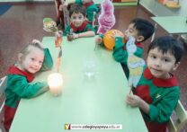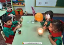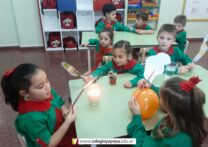 Los niños de sala de 5 años, dieron inicio a la unidad didáctica de abril sobre los 4 elementos (agua, fuego, aire, tierra).