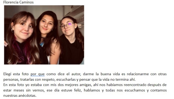 « Los chicos de 3er año eligieron fotos que representen la “buena vida”