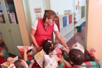 Los niños de salas de 3 años, como parte de sus actividades de la tarde, realizaron un recorrido para conocer los espacios y a las personas que están en el Jardín.