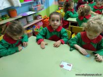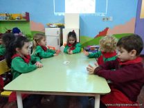 En el mes de la Patria, los niños de las salas de 3 años confeccionaron sus propias escarapelas con porcelana fría para lucirlas durante la semana de mayo.