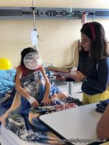 El último sábado visitaron el hospital con varios alumnos de Secundaria que se disfrazaron para divertir y emocionar a los niños internados. Les leyeron cuentos y les cantaron lindas canciones, además de hacer la entrega de lo recolectado.