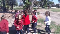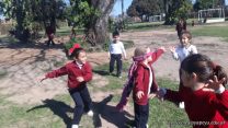 Los niños de la sala de 5 años jugaron al tradicional juego del “gallito ciego”. Lo hicieron en Espacio Andes para aprovechar un hermoso día de sol.