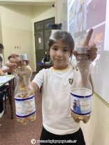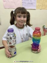Los alumnos de 1er grado crearon sus maracas caseras para luego ejecutar los ritmos de las canciones: “We will rock you” y “La Bamba”…