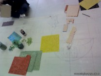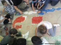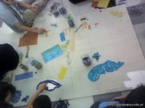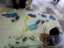 El sábado pasado, sin que la lluvia fuera un impedimento, comenzamos a construir los murales cuyos bocetos fueron elaborados por nuestros niñitos de las salas de 5 años.