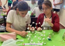 Los alumnos de 5to Naturales, en el espacio de Química II, armaron nanotunos de carbono, respetando la distribución atómica del Buckmisterfullerine.