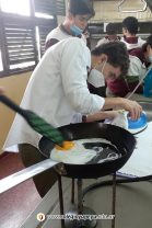 Los alumnos de 6to año en el espacio de Tutoría, realizaron una serie de actividades relacionadas con la vida de alumnos universitarios independientes de su vida familiar. La propuesta implicó una dinámica de trabajo grupal donde tenían que cumplir una serie de desafíos: preparar una mesa, un desayuno con café, jugo de naranja tostadas y huevo frito. Planchar una remera, cocer botones y colgar la ropa.