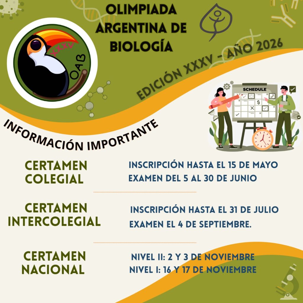 Se invita a todos los estudiantes de nivel secundario a participar en la Olimpíada Argentina de Biología (OAB), una propuesta educativa que desafía a pensar, investigar y descubrir el apasionante mundo de los seres vivos.