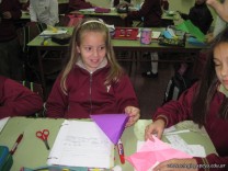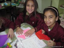 Los alumnos de 4to grado se divirtieron realizando origamis.