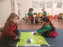 La sala de 3 años exploraron el uso del robot Blue-Bot en tableros cuadriculados, programando recorridos con comandos simples. La actividad promueve el pensamiento lógico, la orientación espacial y el trabajo colaborativo. Se desarrolló en un ambiente lúdico y guiado por la docente.