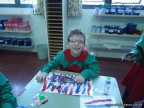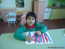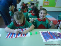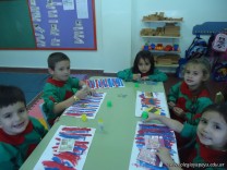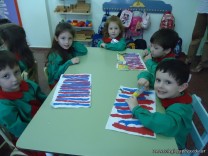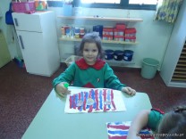 Los alumnos de la Seño Valeria, pintaron líneas verticales con témperas de colores puros, a continuación pueden ver algunas imágenes.