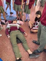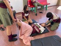 Los alumnos de 6to año, en el espacio curricular Salud, realizaron prácticas de Primeros Auxilios, luego de haberlos incorporado de manera teórica. En la clase practicaron traslado de persona consciente e inconsciente, atención a desmayos y convulsiones, maniobra de Heimlich para obstrucciones en adultos, niños y bebés, atención a asfixia por inmersión, atención a epistaxis, RCP y trabajo de traslado coordinado en grupo. Consideramos de suma utilidad la incorporación de estas maniobras al bagaje de conocimientos de los alumnos.