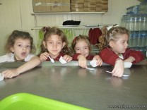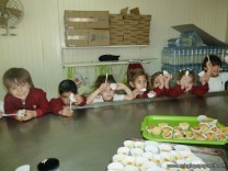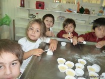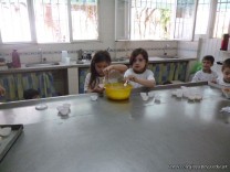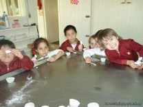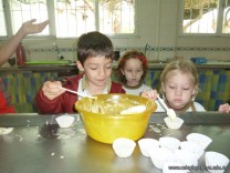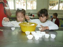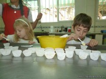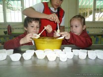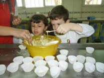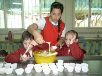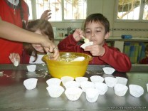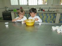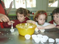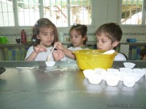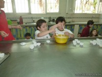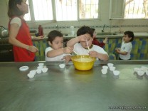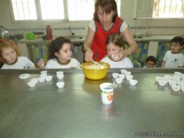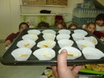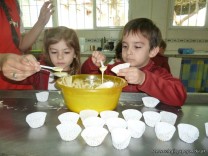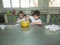 En el Campo Deportivo, como actividad de cocina, los alumnitos de las Salas de 4 años, junto a sus señoritas, prepararon riquísimas magdalenas.