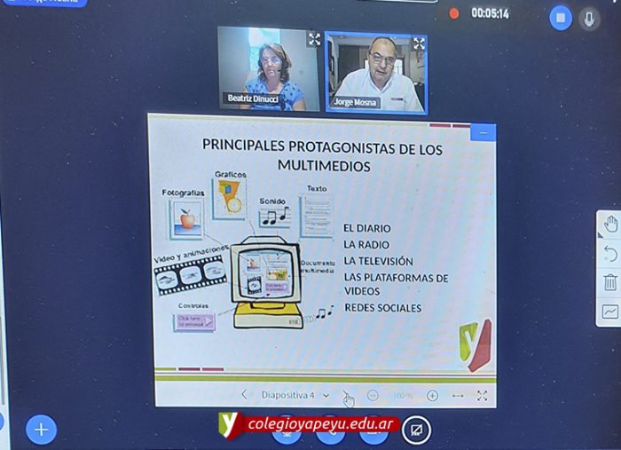 Los alumnos de quinto año participaron de una clase llevada a cabo por el señor Jorge Mosna, tutor del colegio y especialista en medios de comunicación, sobre la comunicación y los medios actuales multimediales.Este es el paso inicial para un importante trabajo en equipo por parte de los chicos, abordando y trabajando de una manera creativa, diversas tipologías textuales.