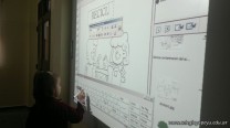 La pizarra digital es una herramienta que nos permite experimentar de una manera diferente a la que siempre estamos acostumbrados cuando trabajamos en la computadora; tiene muchos recursos, nosotros con Primer Grado conocimos algunos. Trabajamos con el cuidado del medio ambiente por medio de videos en la sala de proyección, en la sala de computación, y por último en la pizarra donde pudimos escribir con el lápiz, colocar imágenes y hasta escribir con el teclado digital que aparecía en la misma, siempre ayudados por la seño y la profesora de computación. Ahora le mostramos unas fotos de nosotros trabajando y nuestro trabajo final como quedo.