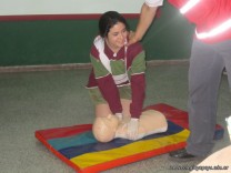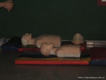 Además, iniciaron la práctica con muñecos sobre como inmovilizar la cabeza en caso de sospecha de lesión en la columna cervical y cómo efectuar el diagnóstico de conciencia.