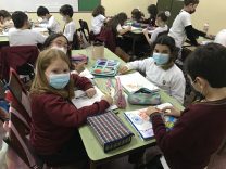 Los alumnos de 4to grado elaboraron un árbol en forma geométrica utilizando diferentes tipos de líneas.