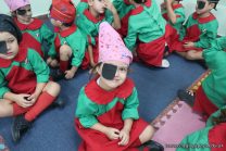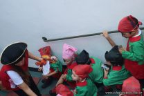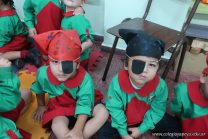 Los niños de las salas de 4 años, en el marco de la unidad didáctica del mes de marzo, buscaron información acerca de los piratas. Luego confeccionaron pañuelos y catalejos para caracterizarse como tales para ir en la búsqueda del tesoro, recorriendo y conociendo los espacios del Jardín.