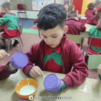 Los niños de las salas de 4, vivieron un increíble viaje de aprendizaje y crecimiento. Con entusiasmo y dedicación, plantaron sus propias suculentas y se embarcaron en el camino de conocerlas y cuidarlas. A lo largo de estos días, los pequeños observaron cómo sus hojas iban teniendo sus primeras raíces. Finalmente, con orgullo, crearon planteritos para regalar a sus mamás en un gesto lleno de amor y gratitud en su día especial.
