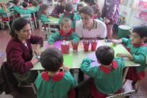Los alumnos de 6to año, con orientación en Ciencias Naturales, realizaron una visita a las Salas de 5 años del Jardín. Compartieron dibujos, charlas y juegos con los pequeños. Además, revivieron su paso por dichas aulas. Fue muy reconfortante ver como los pequeños los escuchaban con suma atención y como los mas grandes se sorprendían de lo despiertos que son los niños hoy en día.