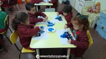 Los alumnos de sala de 3 años, están averiguando todo sobre el nacimiento de nuestra Patria. Esta semana conocieron la histórica casa, símbolo de la Revolución de Mayo, que albergó el proceso de independencia nacional que comenzó en 1810. Con esténcil, témperas y rodillo pusieron manos a la obra reproduciendo la imagen del Cabildo. ¡Excelente trabajo chicos!