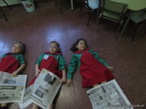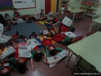 Los alumnos de las Salitas de 4 años, experimentaron moverse libremente con un papel de diario, guiados por su Seño, realizando diferentes actividades.