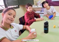 Los alumnos de 5to grado, en el espacio de Música, pudieron seguir una sincronía rítmica, una percusión con vasos.