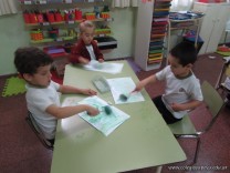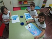 Los alumnos de las Salas de 4 años dibujan con crayones fluor y luego pintan con témpera aguada.
