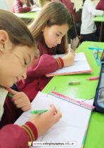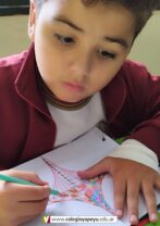 Los alumnos de 5to grado, en el espacio de Educación Plástica, trabajaron la Textura Visual, una iluminación óptica de líneas.