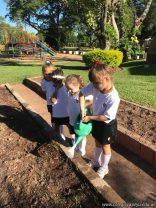 Como parte de las actividades previstas para el Proyecto Huerta, los niños de las tres secciones del jardín, realizaron todos los pasos para la siembra directa de semillas de acelga y lechuga.