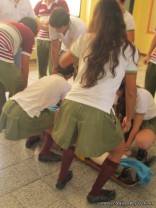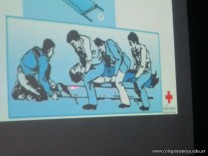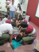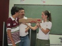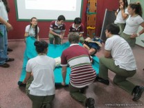 Los alumnos de sexto año de la orientación en ciencias naturales, tuvieron el último encuentro del curso de primeros auxilios dictado por Cruz Roja Argentina. En el mismo se practicaron diferentes tipos de vendajes y variadas técnicas de traslado de persona consciente e inconsciente o politraumatizada. Se aprendieron también la colocación del collar cervical, la coordinación del trabajo en equipo y el traslado escaleras abajo y arriba.