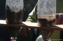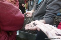 Alimentaron a las aves de corral y filtraron el lumbricompuesto del lumbricario. Tambien comprobaron las propiedades de un suelo con materia orgánica y un suelo erosionado, mediante un dispositivo creado a tal efecto.