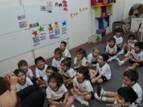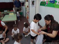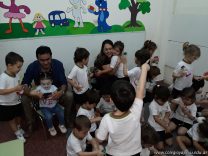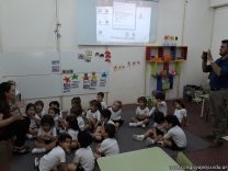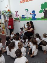 Continuando con las visitas de los tutores de los niños en sala de 3 años, recibimos a la familia de Matías Elvira, quienes vinieron a contar un cuento sobre los juguetes y la importancia de su cuidado. Además, les obsequiaron unos baleros hechos con botellitas de jugo.