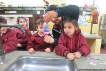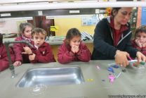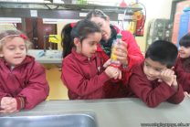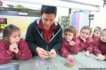En el marco de la unidad didáctica “Doki quiere conocer el cuerpo humano”, los niños de las salas de 5 años, visitaron el Laboratorio para realizar una experiencia sobre el funcionamiento del sistema respiratorio. Se los vio muy entusiasmados.